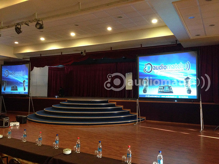 Contamos con telones tipo trípode, telónes mecano de 3x2.25 metros y de 3 x 4 metros con la opción de ser retroproyectados.